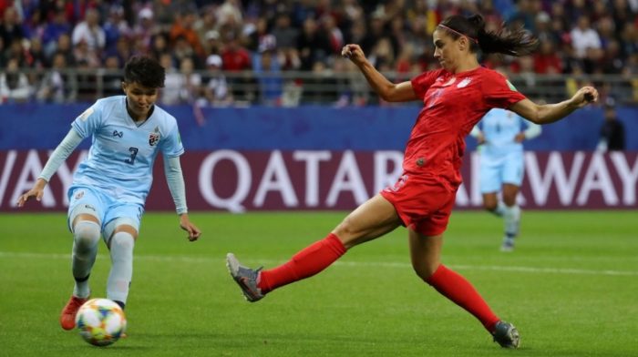 Alex Morgan scored a record-tying five goals as the United States opened its Women's World Cup campaign with a tournament-record 13-0 win over Thailand in Group F on Tuesday in Reims, France.