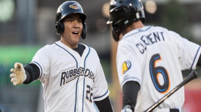Two Akron RubberDucks' unearned runs in the fourth inning snapped a 2-2 tie and gave Akron a 4-2 lead and its first win of the 2019 season, 5-2, coming against the Trenton Thunder on Wednesday at Canal Park.