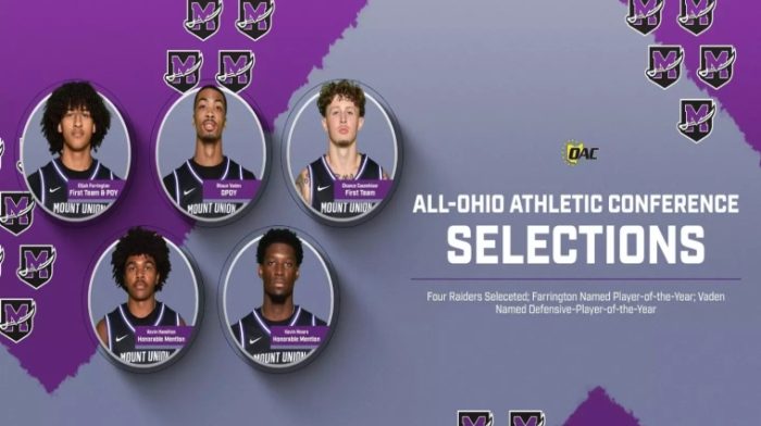 Mount Union's men's basketball team had four players named to the All-Ohio Athletic Conference teams and had two special award winners.